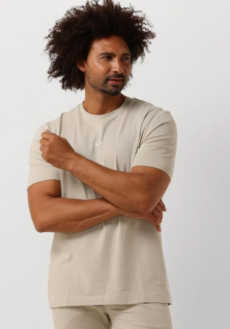 Met de TCHUP T-shirt van BOSS in de kleur beige ben je helemaal on-trend. Dit basic shirt is perfect voor een casual look en kan zowel gedragen worden op een jeans als op een chino. Ga voor een relaxte dag in het park of een gezellige borrel met vrienden. Combineer het shirt met een stoere denim jacket en sneakers voor een complete outfit. Met dit T-shirt zie je er altijd stijlvol uit, zonder al te veel moeite te hoeven doen. Perfect voor heren die houden van comfort en een tijdloze uitstraling.