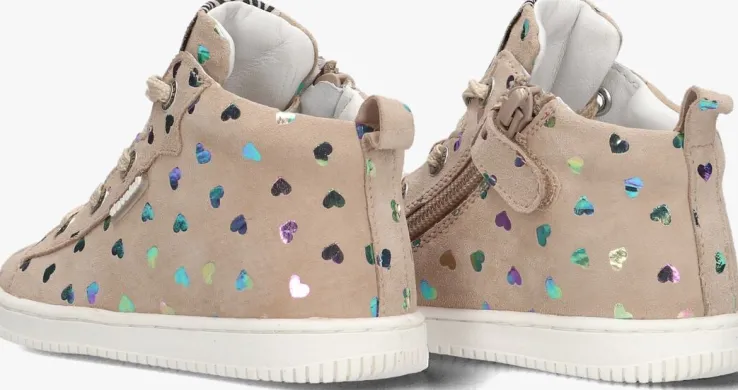 Met deze DEVELAB 44324 hoge sneakers in de kleur beige ben jij helemaal on-trend! De sneaker is van beige suède en heeft een multi kleurige hartjes print met merk emblemen en zilverkleurige veteringen. Trek ze aan met het aantreklusje, vetersluiting of de handige rits aan de zijkant. De sneakers zijn perfect voor meiden die houden van comfort en stijl. Combineer ze met een stoere jeans en een oversized sweater voor een casual look, of draag ze onder een rokje voor een trendy twist. Of je nu naar school gaat of een dagje gaat shoppen, met deze sneakers loop jij er altijd fashionable bij. Laat je creativiteit de vrije loop en maak elke outfit compleet met deze must-have schoenen!