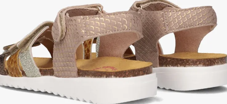 Dol op de zon en van die trendy dierenprintjes? Dan zit je met deze sandaal 48344 uit de collectie van het merk DEVELAB helemaal goed. De buitenkant is gemaakt van suèdelook met een oudroze afwerking met slangenstructuuraan de enkel en drie bandjes om de voorvoet. Eén bandje is afgewerkt met goudkleurig glittertextiel, het middelste bandje is gemaakt van lak leatherlook met een reptielenprint en dan is er nog één bandje van bronskleurig leatherlook met een fijne print. Het binnenwerk heeft een suèdelook afwerking en het voetbed is licht voorgevormd en voelt heerlijk zacht aan door de suède toplaag. Dankzij de klittenbandsluitingen trek je ‘m gemakkelijk aan en uit en pas je ‘m perfect aan naar de voet. De kurken tussenzool zorgt voor een optimale demping en de rubberen loopzool met kartel profiel zorgt voor een uitstekende grip.
