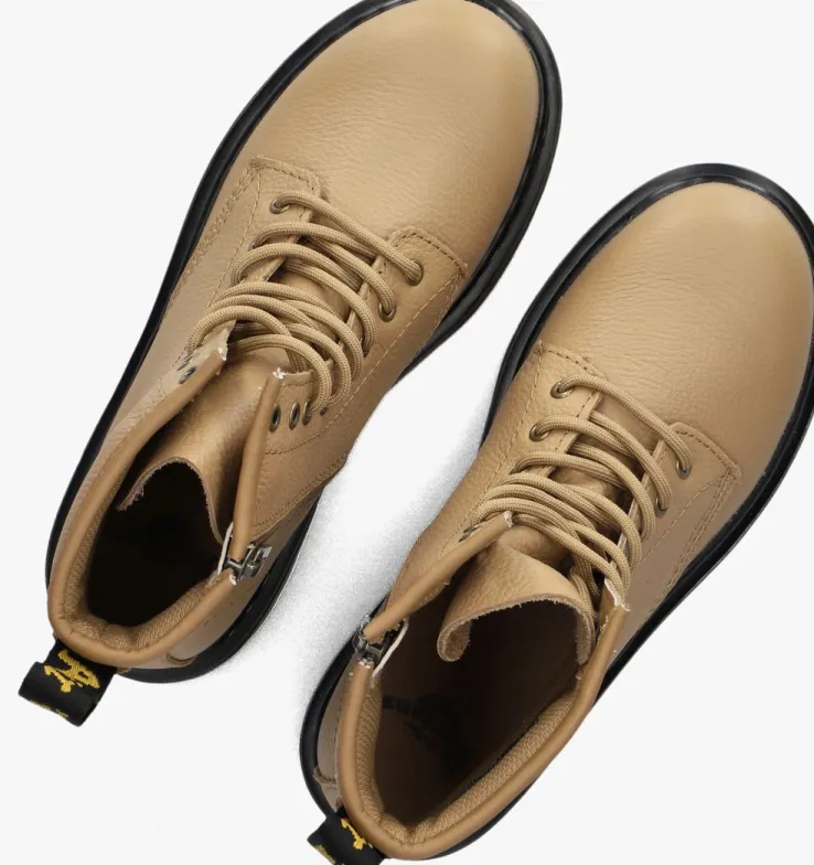 Stap stijlvol de wereld in met deze beige veterboots voor meisjes. Gemaakt van hoogwaardig leer, bieden ze niet alleen een trendy look, maar ook comfort dankzij de textiele en rubberen binnenkant. De ronde neus en stevige rubberen zool maken ze perfect voor een dagje shoppen of een avontuurlijke wandeling in het park. Aan de achterzijde van de schoen zit een merkembleem in de kleur zwart met geel. De zool is vast gestikt met gele garen. Combineer ze moeiteloos met een stoere jeans of een schattig jurkje voor een veelzijdige outfit. De handige ritssluiting zorgt ervoor dat je ze snel aan- en uittrekt. Met deze boots aan je voeten ben je klaar voor elke gelegenheid!