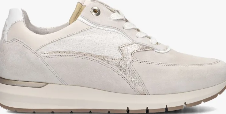 Op zoek naar comfortabele en stijlvolle lage sneakers? Dan is de GABOR 355 perfect voor jou! Deze witte sneakers zijn gemaakt van beige leer in combinatie met panelen van rosekleurig, wit en gebroken wit leer. De binnenvoering is gemaakt van leer en heeft een uitneembaar voetbed. De rubberenzool met gripvast profiel biedt ultiem loopcomfort. Combineer ze met een trendy jeans en een casual t-shirt voor een relaxte look. Of draag ze onder een zomerse jurk voor een sportieve touch. Met deze sneakers loop je er altijd fashionable bij!