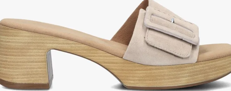 Deze muiltjes 722.3 zijn super trendy voor de zomer! Dit model komt uit de collectie van het merk GABOR en heeft een bovenwerk van beige suède met een beklede siergesp. Onder de gesp zit klittenband bevestigd, zodat hij goed aansluit aan je voet. De voering bestaat uit suèdelook en heeft een dempend voetbed. De houtlook zool maakt dit model helemaal af en het plateau onder de voorvoet is 2,5 centimeter hoog. De hakhoogte is 6 centimeter en is afgewerkt met een kunststof haktip. Dit muiltje staat je altijd goed!