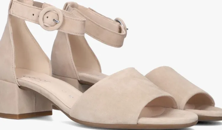 Loop vrolijk de zon tegemoet met deze fijne sandalen 902 uit de Comfort collectie van het merk Gabor.Comfort schoenen hebben meer ruimte bij de tenen en bij de bal van de voet en bieden voor iedere voet de noodzakelijke ruimte. Dit beige model heeft een brede suède band over de voorvoet, waarvan de binnenzijde voorzien is van een smalle elastische inzet voor extra comfort tijdens het lopen. Dit model heeft een fijn bandje om de enkel zodat hij goed blijft zitten ensluit door middel van een handige klittenbandsluiting die fraai is afgewerkt met een siergesp. Het binnenwerk is gevoerd met zacht leer. Opvallend is de suède afwerking aan het blokhakje van 5 centimeter voor een chic geheel. De aangename hakhoogte zorgt ervoor dat jij het heel de dag vol kunt houden op deze beauty’s en met de rubberen loopzool ervaar je veel grip.