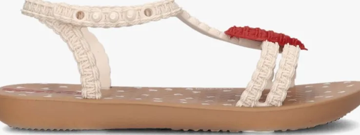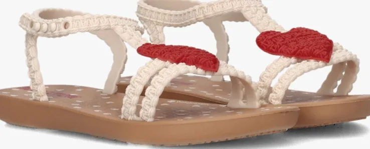 Hoe leuk zijn deze bruine sandaaltjes MY FIRST IPANEMAME van het bekende merk IPANEMA. Dit model is 100% vegan en 100% recyclebaar. Het bovenwerk heeft een gevlochten patroon met twee bandjes over de voorvoet, een verticaal bandje over de wreef en een smal enkelbandje met verstelbare druksluiting. Het rode, rubberen hartje bij de voorvoet maakt dit model extra tof! Het bruine voetbed heeft een subtiel reliëf, een merkembleem onder de hiel en all-over hartjes. De loopzool is voorzien van een gripvast profiel en voorkomt uitglijden. Dit sandaaltje is in de zomer altijd een goede optie!