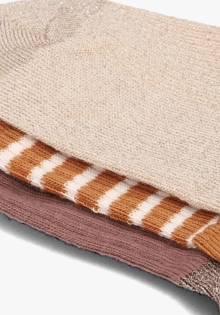 Deze leuke beige met bruine sokken zijn gemaakt van 72% Katoen, 17% Polyamide, 8% Metallic, 3% Elastaan.
