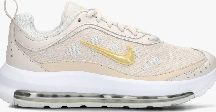 Deze lage sneaker AIR MAX AP ONE komt uit de schoenencollectie van het bekende merk NIKE. Dit witte model bestaat uit geweven textiel in combinatie met beige mesh textiel en heeft op de zijkant een geel, rubber paneel. Dit model heeft stoere merkaccenten, zoals het welbekende logo op de zijkant, het logo op de tong en een geborduurd merkembleem op de hiel. Je trekt dit model gemakkelijk aan met behulp van de aantreklus op de hiel. De voering bestaat uit mesh textiel en het dempende voetbed is niet uitneembaar. De chunky zool maakt dit model samen met het transparante luchtkussen net wat stoerder. Combineer ‘m met een leuke jeans voor een casual look!