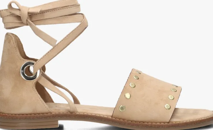 Stap in stijl met deze beige suède sandalen van NOTRE-V. Met artikelnummer 23269 ben jij helemaal klaar voor de zomer! Deze sandalen zijn gemaakt van beige suède met op de wreef goudkleurige ronde studs en bij de hiel twee goudkleurige veterringen waar je de veters rond je enkel kan wikkelen. Draag deze sandalen onder een zomerse jurk of een trendy witte short met zwarte top voor een complete look. Met deze sandalen aan je voeten straal je zelfvertrouwen en elegantie uit. Laat je voeten stralen en geniet van het comfort en de stijl die deze sandalen bieden.
