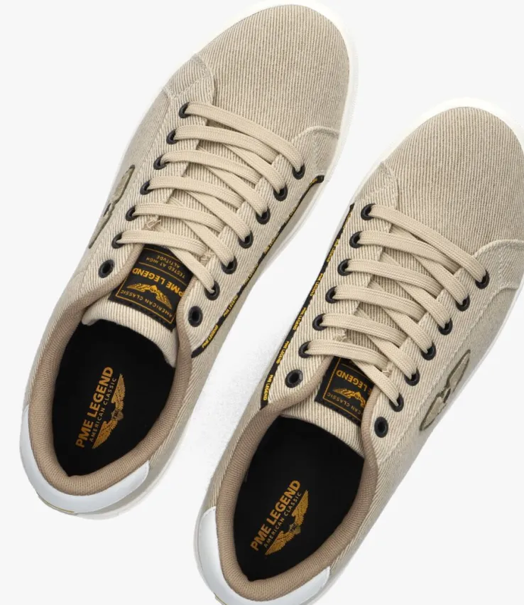 Deze lage sneaker BEECHBURD van beige canvas en suèdepanelenkomt uit de mooie collectie van PME. Deze lichtgewicht schoen heeft een casual look en is gemaakt van geweventextiel met suède panelen en beschikt over de kenmerkende PME details. Zo is de tong voorzien van een rubber merkembleem, zit er op de hielcap vlucht coördinaten en is de zijkant gesierd met de welbekende PME vleugels. Het binnenwerk is gemaakt van canvas en heeft een uitneembaar, dempend voetbed. Extra leuk is het afneembare, gele merklabel op de veters, zodat iedereen kan zien dat jij op echte PME LEGEND sneakers loopt. De rubberen kuipzool met goede grip heeft een licht getextureerde zoolrand en een stootrand op de voorzijde. De perfecte schoen voor die toffe stedentrip of het dagelijks leven!