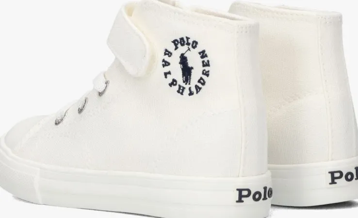 Deze hoge sneaker FORRESTER HI PS van Ralph Lauren is gemaakt van wit canvas textiel en heeft donkerblauwe accenten. Opvallend zijn de zilverkleurige veterringen met reliëf, het donkerblauwe geborduurde merkembleem aan de zijkant en het merkembleem op de hiel. Je stapt er gemakkelijk in en uit dankzij de elastische veters en trekt ‘m strakker door de klittenbandsluiting. De voering is gemaakt van textiel en heeft een vast voetbed. De rubberen zool heeft een gripvast profiel en zorgt voor voldoende steun en stabiliteit!