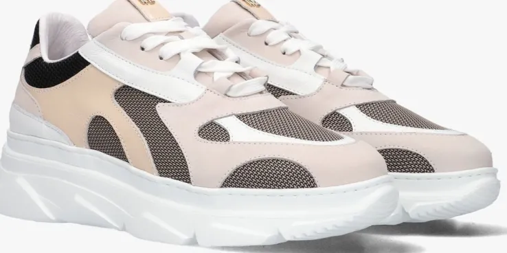 Stap in stijl met deze lage beige leren sneakers van RED-RAG. De sneaker heeft verschillende panelen van leer, suède en mesh in de kleuren roze, beige en zwart. De perfecte keuze voor dames die op zoek zijn naar comfort en klasse. De schoen is afgewerkt met witte veters, goudkleurige metalen merklogo op de tong en zijn opvallende grove witte rubberen zool met reliëf. Met zijn comfortabele leren binnenvoering, voelt deze sneakers als wolkjes aan je voeten. Combineer ze met een trendy jeans en een basic t-shirt voor een casual look, of draag ze onder een zomerse jurk voor een speelse twist. Laat jezelf stralen en voeg deze must-have schoenen toe aan je collectie.