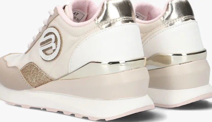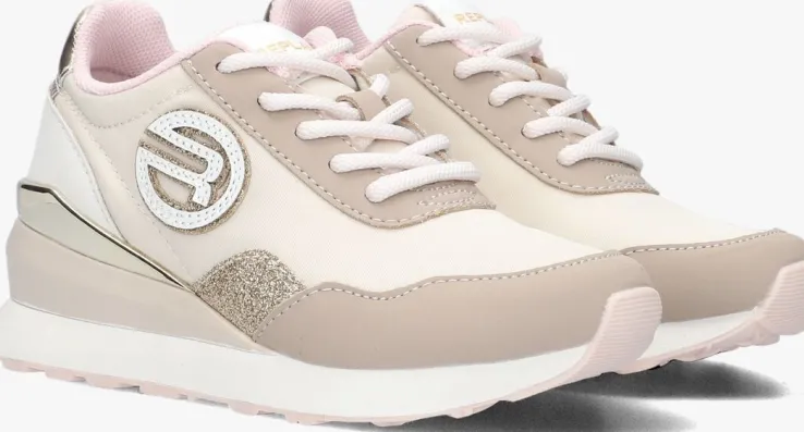 Nu kunnen de jongste onder ons ook meedoen met de dadsneaker trend! Dit veelzijdige lage sneaker model ELEKTRA JR-1 komt uit de collectie van het merk REPLAY. Dit model is uitgevoerd in beige textiel in combinatie met leatherlook bruine overlays en heeft goudkleurige accenten. Opvallende details de roze veters, de goudkeurige hielcap, het roomwitte hielstuk, het glanzende merklabel op de tong, het merklogo op de zijkant, de inzet met goudkleurige glitters en de goudkleurige hielstabilisator voor een goede ondersteuning aan de hiel. Debruine tussenzool geeft deze sneaker een enorme fashion boost en maakt je net wat langer! De voering is gemaakt van mesh textiel en heeft een vast voetbed. De rubberen zool heeft een hoogte van 4,5 centimeter onder de hiel en de roze loopzool heeft een gripvast profiel. Maak met dit item een statement en show jouw unieke stijl!