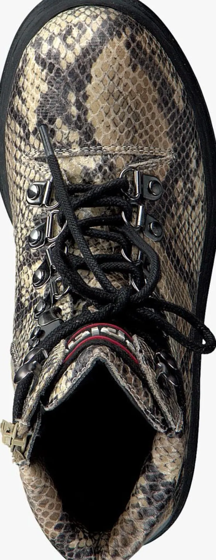 Met deze stoere boots SEN uit de collectie van het merk REPLAY ben jij helemaal klaar voor al die avonturen buiten maar maak jij tegelijkertijd ook een fashion statement! De buitenkant van dit toffe model is uitgevoerd in beigelederlook met slangen print en structuur. De D-veteroogjes en haakjes zorgen voor een stoere touchen door middel van de rits trek je ze heel gemakkelijk aan en uit. De rubberen zool heeft een used look en een gripvast profiel. De voering is gemaakt van leer en het voetbed is uitneembaar. Laat de bovenste veterhaakjes open en draag de veter om de enkel voor een nog stoerdere look!
