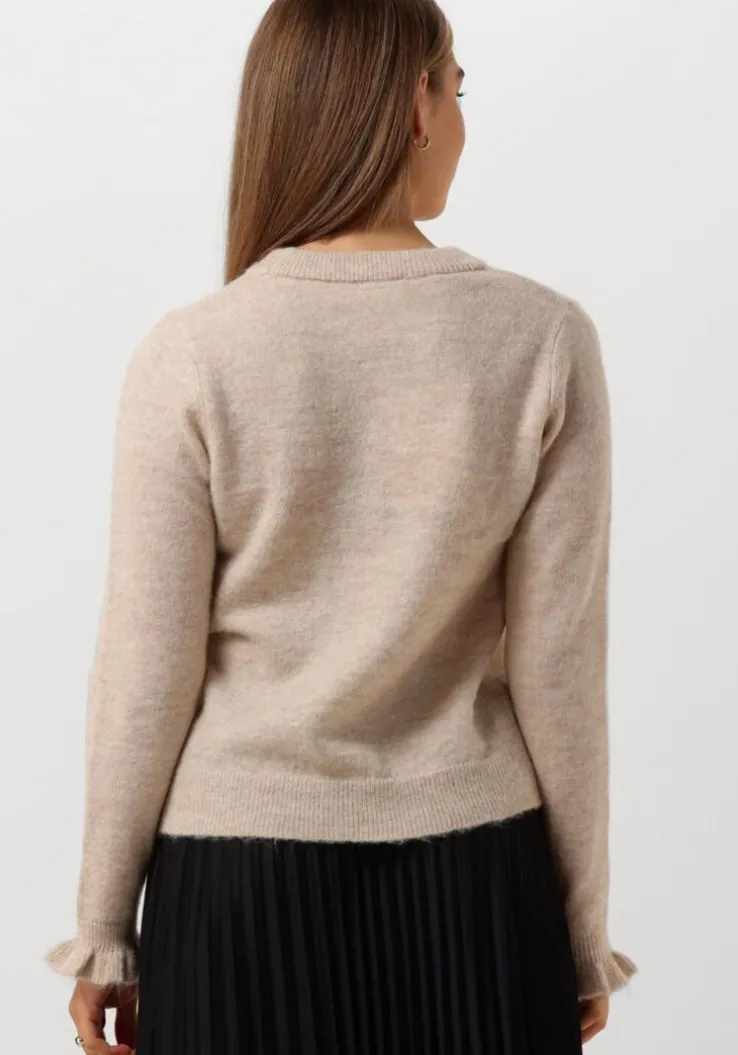 Voeg een vleugje elegantie toe aan je garderobe met de SLFLULU LS KNIT FRILL CUFF O-NECK trui van SELECTED FEMME. Deze beige trui is perfect voor een ontspannen dagje thuis of een gezellige lunch met vriendinnen. De subtiele ruches aan de mouwen geven een speelse twist aan je outfit. Combineer met een stijlvolle jeans of een chique rok voor een moeiteloze look. De zachte stof zorgt voor ultiem comfort, terwijl de tijdloze kleur makkelijk te matchen is met je favoriete accessoires.