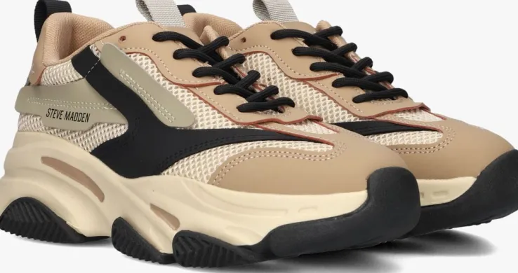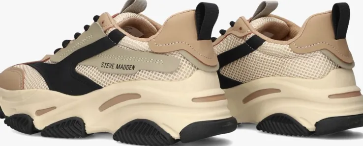 Deze lage sneaker JPOSSESSION met sportief uiterlijk komt uit de collectie van het merk STEVE MADDEN. Dit model is gemaakt van beige mesh textiel in combinatie met leatherlook panelen in het zwart en grijs. De zijkant is voorzien van een zwart merkembleem en de twee aantreklussen van textiel zijn te vinden op de tong en hiel. De voering is gemaakt van textiel en het voetbed is uitneembaar. De rubberen zool heeft een grof profiel en zorgt voor uitstekende stabiliteit de hele dag door!