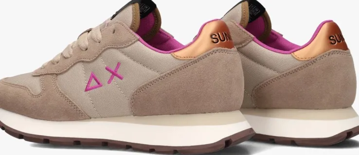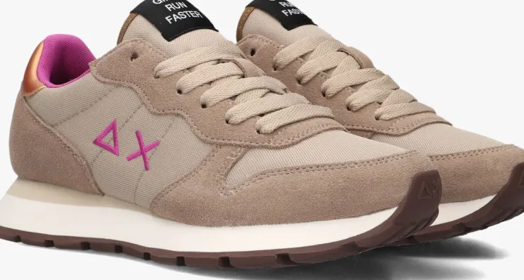 beige hub lage sneakers grid-w