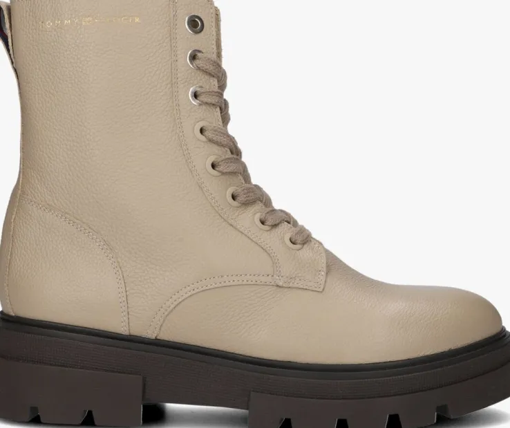 Stap stijlvol de dag in met de BICOLOR LACE-UP veterboots van TOMMY HILFIGER. Deze zwarte leren boots met ronde neus en rubberen zool bieden comfort en klasse. De boot heeft goudkleurige veterringen, rits en merkreliëf op de zijkant. De binnenkant, een mix van leer en textiel, zorgt voor een fijne pasvorm. Dankzij de handige aantreklus en ritssluiting trek je ze moeiteloos aan en uit. Perfect voor een dagje shoppen of een gezellige lunch met vriendinnen. Combineer ze met een strakke jeans en een oversized trui voor een casual look, of draag ze onder een stijlvolle rok voor een edgy twist. Deze boots zijn een must-have voor elke modebewuste dame.