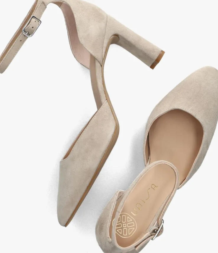 Stap in stijl met de UNISA WARREN pumps in de kleur beige. Deze elegante schoenen zijn perfect voor een avondje uit of een chique gelegenheid. Dit model is gemaakt van beigekleurig suéde en door zijn slanke vorm en enkelbandje geeft dit een chique uitstraling. Het binnenwerk is gevoerd met leer en het voetbed is voorzien van een leren toplaag met dempende werking voor een comfortabel gevoel. De heel is 8 centimeter hoog en de rubberen zool met fijn ribbelprofiel maakt het mooie plaatje compleet. Combineer ‘m bij jouw mooiste outfit en look stunning bij dat fijne feestje of dinertje!
