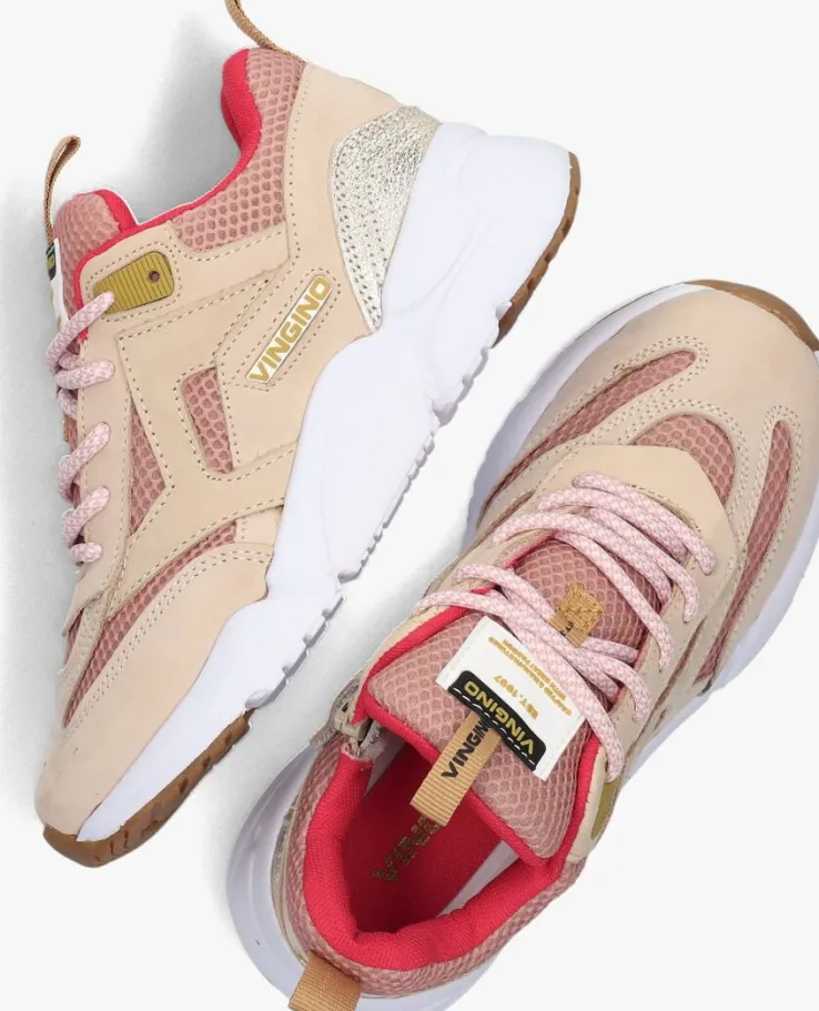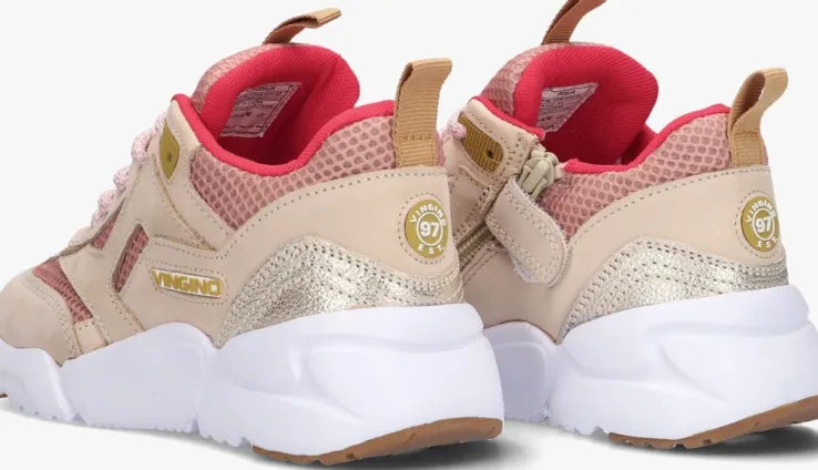 Kan jij deze stoere lage sneaker ODILIAvan VINGINO wel waarderen? Ze voldoen helemaal aan de laatste trends en zien er niet alleen heel stoer uit maar zijn ook nog eens heel comfy. Het bovenwerk is gemaakt van roze mesh met panelen beige nubuck en een goudkleurig stuk bij de hiel. Andere opvallende details zijn: het rubberen merkembleem op de tong, het label aan de zijkant en de aantreklus op de hiel. Ook is de lichtgewicht chunky zool met bruine inzetten een ware eye catcher. Degevoerde enkelkraag en tong van badstof in combinatie met het dempende en uitneembare voetbed biedt veel comfort en steun aan nog ontwikkelende voeten. Dankzij het grove profiel ervaar je veel grip en stabiliteit bij al je avonturen buiten!