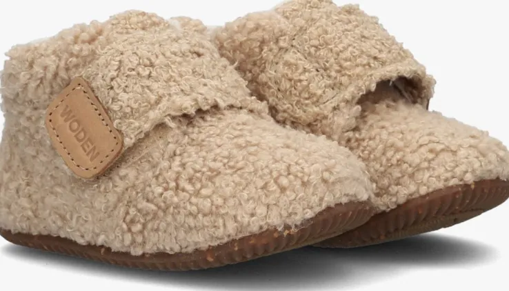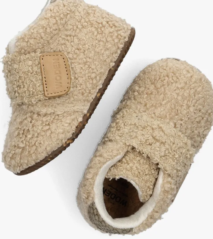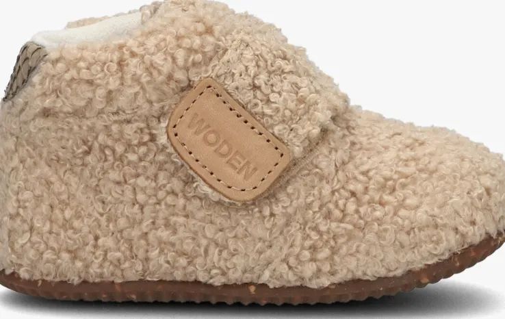 Deze lieve stapschoentjes begeleiden een kleintje van kruipen naar lopen. Met dit beige model KIM TEDDY is van het Scandinavische merk WODEN draag jij je steentje bij aan een beter milieu én zal je opvallen op het schoolplein. Schoenen van dit merk worden gemaakt met een hoog bewustzijn voor de herkomst van de materialen zoals het kurk en visleer uit de Noordzee. Zelfs de schoenendoos is geproduceerd van gerecycled karton!De buitenkantvan dit model is gemaakt van zacht teddy stof met een brede klittenbandsluiting, waarmee je het schoentje gemakkelijk aan- en uit kunt trekken. Extra leuk detail is het inzetstuk van visleer op de hiel en het lederen merklabel met merkreliëf op de klittenbandsluiting. De voering is gemaakt van zacht textiel met een uitneembaar voetbed van kurk voor een uitstekende demping en afwikkeling van de voet. De gespikkelde zool is gemaakt van natuurrubber en 10% gerecycled rubber met een gripvast profiel die zorgt voor een fijne stabiliteit voor je kindje.Het schoentje islicht en buigzaamen erg fijn voor de eerst stapjes van je kindje.Een schoentje beschermt voetjes tegen vocht en kou, zonder de bewegingsvrijheid of de ontwikkeling te belemmeren. Is jouw kleintje al klaar om stappend op avontuur te gaan?