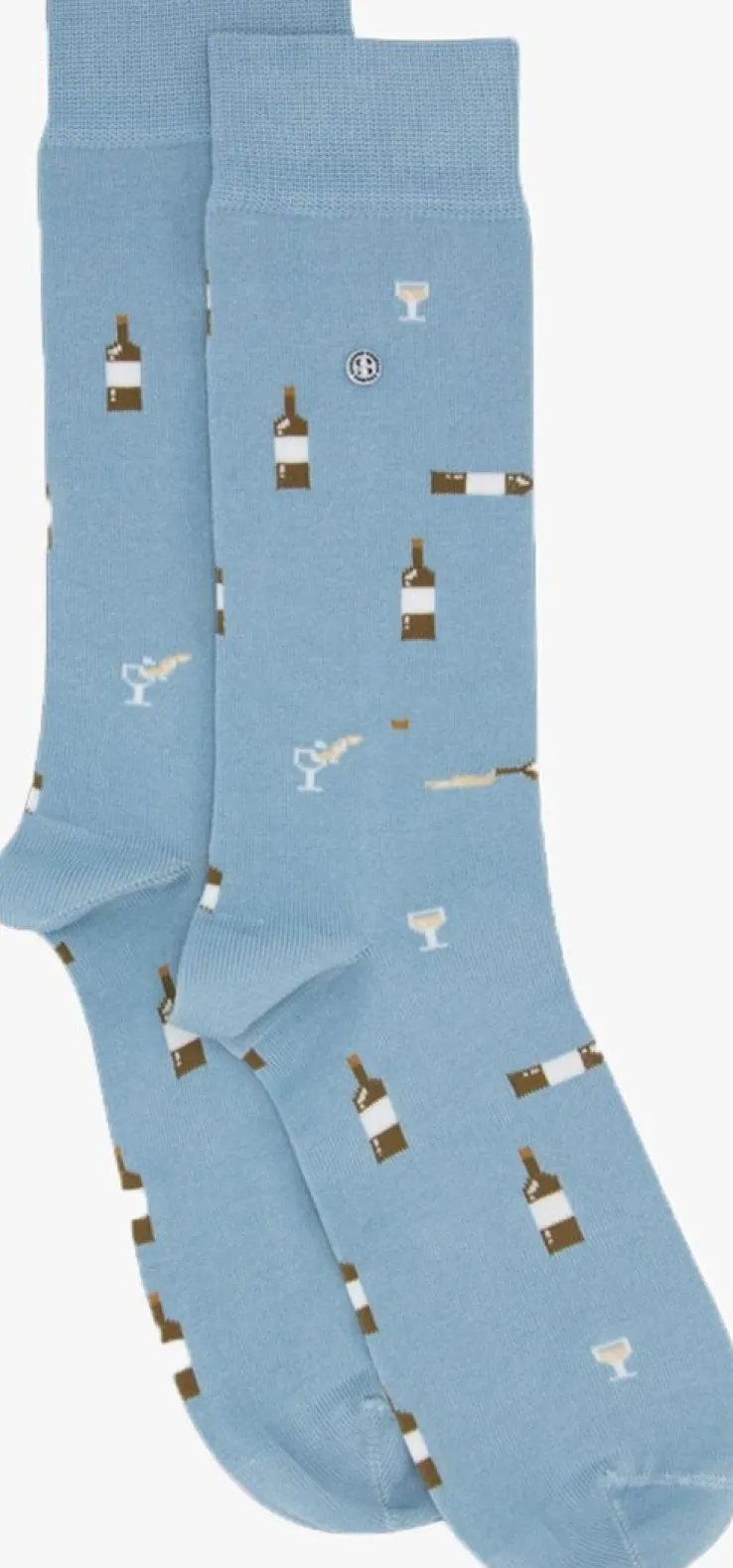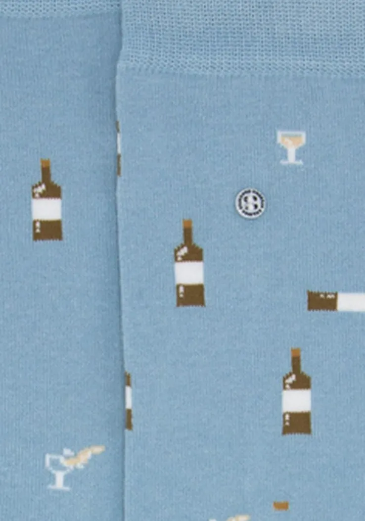 Simpelweg gezegd zijn kwaliteit, stijl en authenciteit de kernwaarden van het merk Alfredo Gonzales. Maar als je naar de mooie producten uit de collectie kijkt zal je zien dat er geen enkele moeite bespaard is gebleven bij het maken van deze creatieve uitingen in de vorm van sokken. De WINEsokken zijn uitgevoerd in licht blauw textiel met een print van wijn flessen en vol geschonken glazen. Elk paar Alfredo Gonzales sokken zijn voorzien van een trademark button waardoor ze niet alleen herkenbaar zijn maar wat tevens zorgt voor een prachtig klein detail als toevoeging van elke outfit. Samenstelling van de sokken: 78% katoen, 18% nylon en 4% lycra.