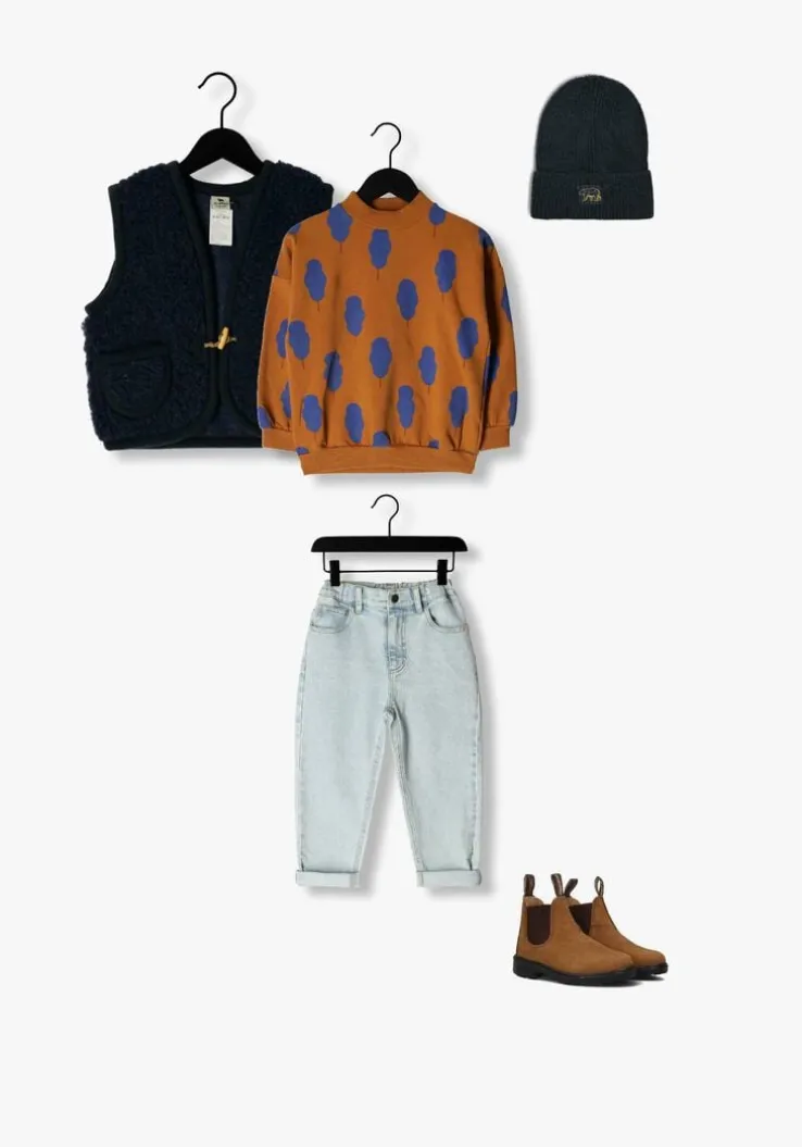 Maat 80-86 t/m 104-110 hebben 1 knoopje, vanaf maat 116-122 heeft het gilet 2 knoopjes.