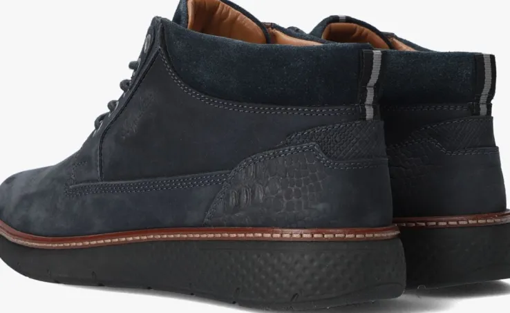 Casual donkerblauwe veterboot DEXTER met bruine accenten van het merk AUSTRALIAN. Dit model heeft een fraai bovenwerk van zacht nubuck met zilverkleurige veterringen, een bruin label van leer met merkopdruk op de tong en op de zijkant bevindt zich een reliëf merkopdruk. De hiel is voorzien van een verstevigende hielcap van blauw leer met krokodillen print en een handige aantreklus van zwart textiel met een grijze accentstreep, deze is ook terug te zien op de tong. Het binnenwerk is van zacht cognac kleurig leer en heeft een uitneembaar voetbed. De enkelkraag is opgevuld en biedt veel ondersteuning en comfort. Ook de sportieve zool met profiel van opgedeelde vlakken zorgt voor een comfortabel loopcomfort en een uitstekende grip. De perfecte sneaker voor een fijne citytrip! Een extra leuk detail aan deze schoen is de lederen sierrand met goudkleurig stiksel die de schoen net even wat chiquer maakt.