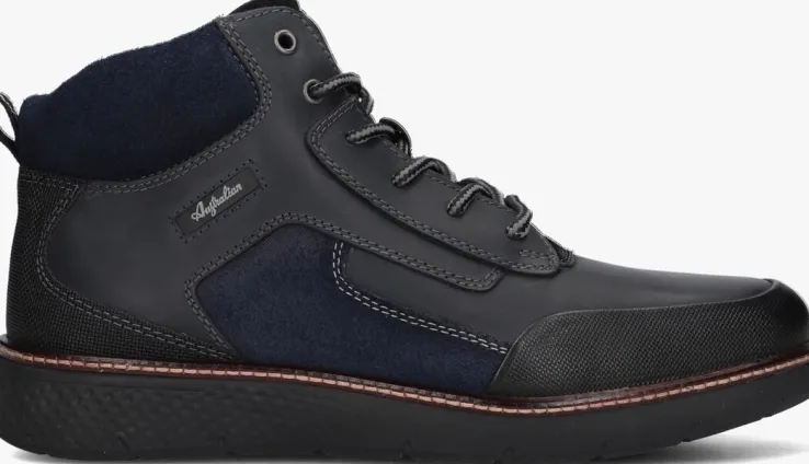 Stap stijlvol de dag in met de DURANGO veterboots van AUSTRALIAN. Deze blauwe herenschoenen zijn perfect voor elke gelegenheid. De schoenen hebben overlays effect van leer en suède, de schoen zijn afgewerkt met dubbele stiksel van grijs en wit. De hielinzet beschermtde hiel tegen beschadigingen en geeft de schoen een mooie finishing touch. De ronde metalen veterringen en de tweekleurige veters geeft de schoen een stoere look. Daarnaast trek je de schoen eenvoudig aan met de aantreklus van zwart en wit textiel. Op de tong zit een leren merklabel. Met hun trendy design en comfortabele pasvorm, zijn ze ideaal voor een casual dagje uit of een avondje stappen met vrienden. Combineer ze met een stoere jeans en een casual shirt voor een moeiteloze en trendy look. Of draag ze onder een nette broek en een overhemd voor een meer formele uitstraling. Met de DURANGO veterboots ben je altijd klaar om indruk te maken.