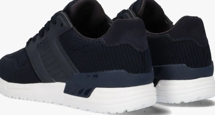 Deze donkerblauwe lage sneaker R140 KNT Kuit de collectie van het merk BJORN BORG voelt heerlijk comfortabel aan dankzij het gebreide textiel buitenwerk en biedt tegelijkertijd onwijs veel steun aan voeten van sportieve en uitbundige jongens door de stevige zijpanelen van rubber en de rubberen hielstabilisator. Daardoor heeft hij tevens een unieke uitstraling gekregen. Opvallend zijn de verschillende merkopdrukken op de tong, zijkant en hiel. Het binnenwerk is gevoerd met mesh en heeft een uitneembaar voetbed. De witte rubberen zoolheeft een donkerblauwe inzet voorextra steun en stabiliteit en is afgewerkt met een gripvast profiel.