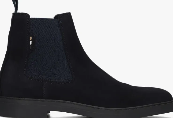Stoer, netjes & comfortabel, dat is deze chelsea boot CALEV 1 uit de schoenencollectie van het merk BOSS. De boot is uitgewerkt in donkerblauw suède en heeft elastische zijpanelen voor een trendy look en zorgt ook voor een gemakkelijk instap. Leuke details zijn de fraaie stiksels, de aantreklus van textiel aan de hiel en de geborduurde merkkleuren op de zijkant. De binnenkant is gemaakt van zwart leer en heeft een zacht, vast voetbed. De rubberen zoolrand geeft een mooie finishing touch aan deze boot en de loopzool is voorzien van een gripvast profiel! Combineer ‘m onder een stoere jeans of nette pantalon!