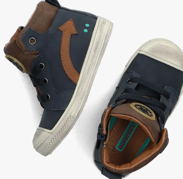 Deze blauwe hogesneaker FRITS FERMkomt uit de Stap collectie van het merk BUNNIES JR. Dit bijzonder flexibele schoentjeheeft een nubuck bovenwerk met een tong en enkelkraag van technisch mesh. De donkerblauwe pijl en de herkenbare stipjes in het mintgroen op de zijkant zorgen samen met het licht gele rubberen merklabel op de tong voor een stoere en speelse look.Dankzij de rubberen neus is het nubuckextra goed beschermd tegen beschadigingen en met behulp van de rits en de aantreklus trek je deze schoen eenvoudig aan bij je kleintje.Het binnenwerk is van leer en met hetuitneembarevoetbed kun je goedzien of je kindje de juiste maat draagt. De zool is gemaakt van rubber en heeft een stootrand op de neus en een gripvast ruitjesprofiel.