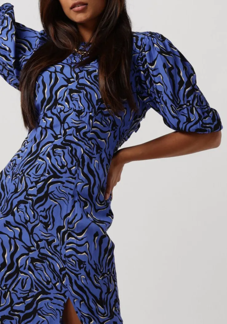 blauwe envii maxi jurk enruby ss midi dress aop 6696