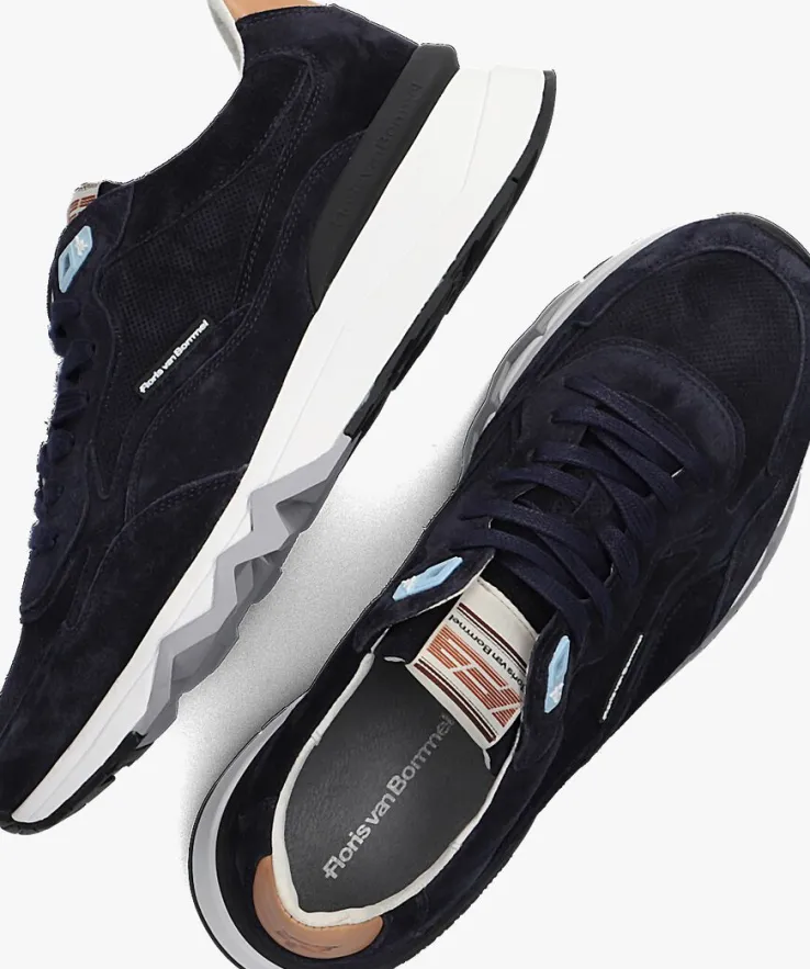 Uit de collectie van het Nederlandse merk Floris van Bommel is deze donkerblauwe lage sneaker SFM-10136 met coole look.Deze sportieve sneaker heeft een bovenwerk van suède met meerdere overlays en een merklabel op de tong en zijkant. De hiel is voorzien van een bruine leren hielcap met merkreliëf, de veters zijn gemaakt van katoen en onder de voorvoet is in de rubberen loopzool een grijs zigzagaccent te vinden die hem niet alleen een stoere look geeft maar ook veel grip. Het binnenwerkis uitgevoerd in leer en heeft een uitneembaar voetbed. De sportieve zool met grof profiel is licht van gewicht en voelt comfortabel aan bij iedere stap. Combineer hem onder een stoere jeans voor een sportieve casual look.