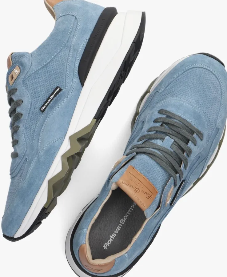Uit de collectie van het Nederlandse merk Floris van Bommel is deze blauwe lage sneaker SFM-10136 met coole look.Deze sportieve sneaker heeft een bovenwerk van suède met meerdere overlays en een leren merklabel op de tong. De hiel is voorzien van een bruine leren hielcap met merkreliëf en de zijkant van een rubber merkembleem. De veters zijn gemaakt van katoen en onder de voorvoet is in de rubberen zool een groen zigzagaccent te vinden die hem niet alleen een stoere look geeft maar tegelijkertijd ook veel grip. Het binnenwerkis uitgevoerd in leer en heeft een uitneembaar voetbed. De sportieve rubberen zool met grof profiel is licht van gewicht en voelt comfortabel aan bij iedere stap. Combineer hem onder een stoere jeans voor een sportieve casual look.