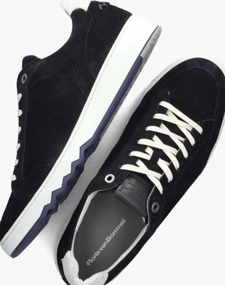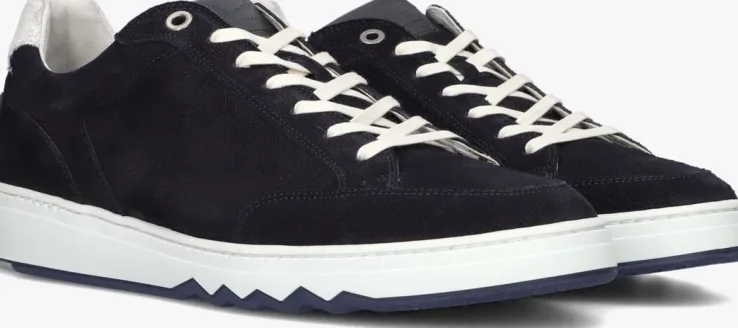 Deze lage sneaker SFM-10183 van FLORIS VAN BOMMEL is een super tof exemplaar en kan je dragen naar elke gelegenheid! Dit model bestaat uit donkerblauw suède en het bovenwerk heeft toffe details, zoals het fraaie stikwerk, de metalen veterringen, de platte veters, de leren hielcap, het zigzagpatroon op de hiel en het textielen merklabel op de tong. De voering bestaat uit leer, het voetbed is uitneembaar en de gewatteerde enkelkraag biedt een fijn comfort. De rubberen zool loopt op tot een hoogte van 3,5 centimeter en het donkerblauwe rubberen onder de voorvoet is afgewerkt met een gekartelde rand, wat dit model net wat stoerder maakt!
