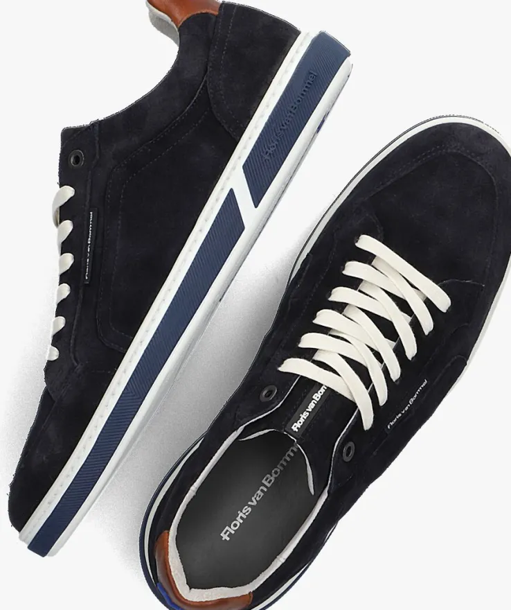 Deze lage sneaker SFM-10202 van FLORIS VAN BOMMEL is gemaakt van donkerblauw suède, heeft een bruine hielcap en zwarte merkemblemen op de tong en de zijkant van de veterrand. Toffe details zijn de twee metalen veterringen, de witte veters en het blauwe rubberen zigzagreliëf op de hiel. De voering is gemaakt van leer en heeft een suède hielstuk en gevulde enkelkraag voor meer comfort. Het dempende voetbed is uitneembaar. De wit met blauwe zool heeft een subtiel lijntjesprofiel met een merkreliëf op de zoolrand. Combineer ‘m met een leuke skinny jeans!