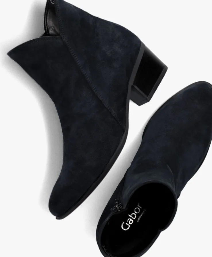 Mooi & comfortabel! Dat is dit donkerblauwe enkellaarsje 680.2 uit de Comfort collectie van het merk Gabor. Comfort schoenen hebben meer volume bij de tenen en bij de bal van de voet en bieden voor iedere voet de noodzakelijke ruimte. Dit model is uitgevoerd in zacht suède meteen binnenvoering van zacht textiel en een vast voetbed. Met de handige ritssluiting aan de binnenkanttrek je ‘m makkelijk aan en uit. Het laarsje heeft een normale G-wijdte en de rubberen zool heeft een fijn lijntjes profiel voor een goede grip en een hoog loopcomfort. De schoen heefteen hakhoogte van 5 centimeter en is chic afgewerkt met schuin aflopende schacht en een V-inkeping op de zijkant. De schachthoogte is 13 centimeter, gemeten bij maat 38. Match zeonder jouw lievelingsbroek of -jurk en je bent er klaar voor!