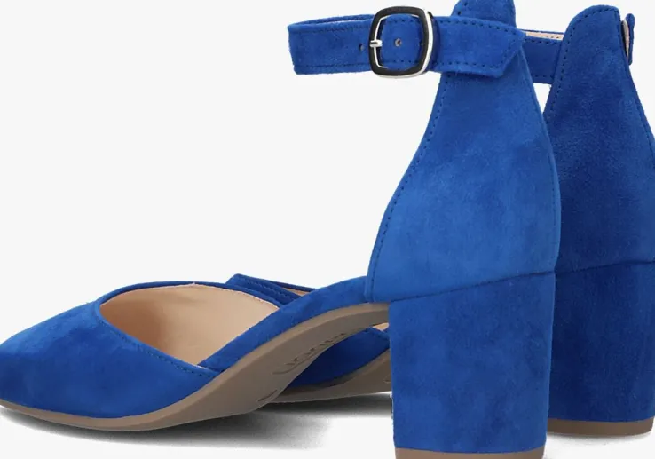 Deze blauwe pump 340komt uit de collectie van het merk Gabor. Dit elegante model is uitgevoerd in luxe suède en heeft een bandje met subtiele gesp om de enkel. De pump heeft een voering van leer en een vast voetbed. Het met leren bekledeblokhakje isruim 5 centimeter en zorgt voor een extra vrouwelijke look. Dit model heeft een smallere F-wijdte, een spitseneus en een flexibele rubberen zool. Met recht eenstralende verschijning onder jouw favoriete outfit!