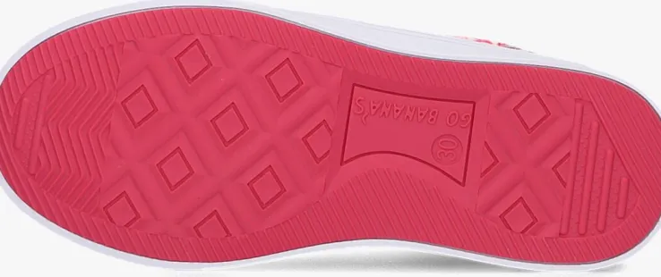 GO BANANAS! Dat gaat zeker lukkenmet deze leuke lage sneakersKOALA uit de collectie van het gelijknamige merk. Dit vrolijke merk zorgt voor een lach op een ieders gezicht! De buitenkant is gemaakt vanstrak geweven canvas in een groene, oranje en roze kleur en is voorzien van diverse prints. Zo vind je aande ene kant een groene koala print, aan de andere kant een roze print met diverse fruit soorten en een stoere zonnebril en is de tong en neus gesierd met oranje canvas en een zwarte stippen print. Leuk detail is het banaantje achterop de hiel, de metalen veterringen en de tong met een zilverkleurig metallic label met goudkleurig merkopdruk. Extra handig is de witte rubberen stootneus, hierdoor kan de schoen tegen een stootje en blijft de schoen langer mooi. Want bij het klim en klauteren, buitenspelen of een potje voetballen mag niets in de weg staan! Het binnenwerk heeft een canvas voering met een antibacteriële en uitneembare binnenzool. De roze loopzool is voorzien van een gripvast profiel.