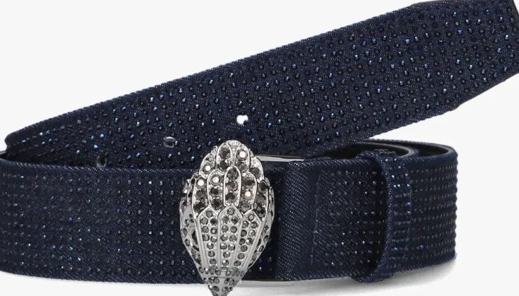Voeg een vleugje elegantie toe aan je outfit met de KENSINGTON 38 BELT van KURT GEIGER LONDON. Deze blauwe riem van denim met strass is perfect voor dames die houden van een stijlvolle en opvallende touch. De breedte is 3,5 centimeter.