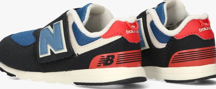 Sportievelage sneaker NW574 van het merk New Balance. De schoen is gemaakt van donkerblauw suèdelook in combinatie met blauw meshen heefteen binnenvoering van textiel en een uitneembaar voetbed. Opvallend zijn de merkopdrukken op detong, hiel en beide zijkanten en het printje. De zool en beige hielstabilisator zijn gemaakt van rubber en gripvast profiel. De rubberen zool met bruine loopvlakken zorgen voor een uitstekende grip. Je trekt ze super gemakkelijk aan en uit dankzij de klittenbandsluiting in combinatie met de aantreklus! Dit schoentje maakt elke outfit tof!