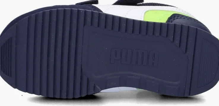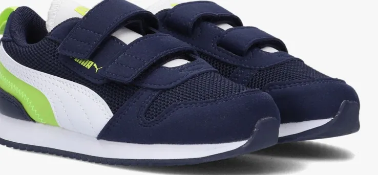 Deze blauweR78 INFlage sneaker met witte en groene accenten van het merk Puma is een echte klassieker. Dit model is gemaakt van stevig nylonmet suèdelookoverlays. Op de tong en zijkant prijken groene merkopdrukken en de zijkant is voorzien van een wit logo. Extra tof is het groene textiel op de zijkant, de witte tong en de leatherlook hielstabilisator. Het binnenwerk is gevoerd met mesh in combinatie mettextiel en heeft eenuitneembaar soft foam voetbed. Je trekt ‘m gemakkelijk aan en uit dankzij de handige klittenbandsluiting. De microrubberenzool met donkerblauwaccentheeft eengripvast profiel en geeft de schoeneen echte retro look. Combineer hem stoer onder een toffe jeans!