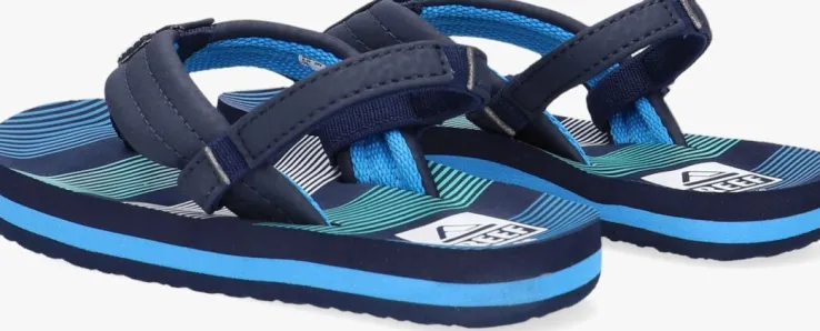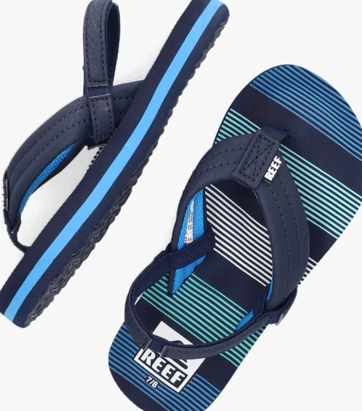 Fijn buitenspelen, een dagje naar de dierentuin of het strand, met deze sandaal LITTLEAHI uit de collectie van het merk REEFgaat dat zeker lukken. De buitenkant is gemaaktvan blauwe leatherlook bandjes en zijn voorzien van een elastiek aan de achterzijde waardoor je ‘m niet alleen gemakkelijk en snel aan- en uittrekt maar ook nog eens perfect passend maakt aan de voet. Het blauwe gestreepte voetbed is uitgevoerd in rubber en zorgt voor een fijne demping en een goede afwikkeling van de voet. De zoolrand is gesierd met een roze accentstreep en de loopzool heeft eengripvastprofiel.