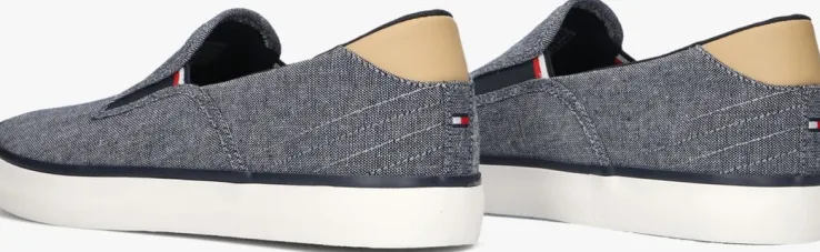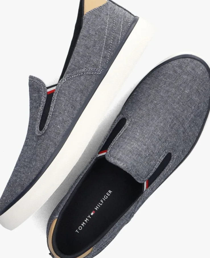 Stap in stijl met de TOMMY HILFIGER HI VULC LOW SLIPON CHAMBRAY instappers voor heren. Deze donkerblauwe schoenen van gemêleerd textiel zijn altijd een goede keuze! De voering bestaat ook uit textiel. Dankzij de elastische inzetten bij de tong, stap je razendsnel in de schoen. De rubberen zool zorgt voor grip en stabiliteit. Perfect voor een casual dagje uit of een relaxte avond met vrienden!