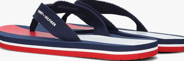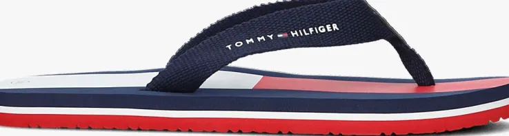 Van het sportieve Amerikaanse merk Tommy Hilfiger is deze sportieve 32919 slipper met een sportieve look.Dit blauw met model is uitgevoerd in lichtgewicht microrubber meteenband van sterk geweven textiel. Deband is voorzien van eengeborduurd merkopdruk met het welbekende vlaglogo. Op het voetbed is een oversized vlaglogo opdruk en merkopdruk te vinden. De loopzool biedt grip door het fijne profiel.Draag ‘m naar het strand of gewoon lekker altijd en overal!