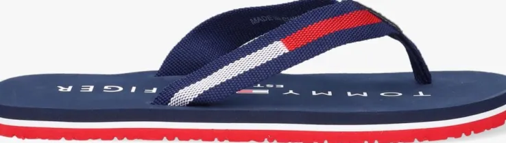 Met deze lichtgewichtblauwe teenslipper 30983van het merk TOMMY HILFIGER loop jij heelfashionablelangs het zwembad, op het strand of gewoon heelcomfydoor de stad. Het bandje over de voet is uitgevoerd inblauw met rood en wit textiel en is voorzien van een merklogoen opdruk. Het voetbed voelt zacht aan onder de voet en is voorzien van een oversized merkopdruk.Hetgripvasteprofielonder de donkerblauwe zoolzorgt ervoor dat jij zelfverzekerd rond kunt lopen!