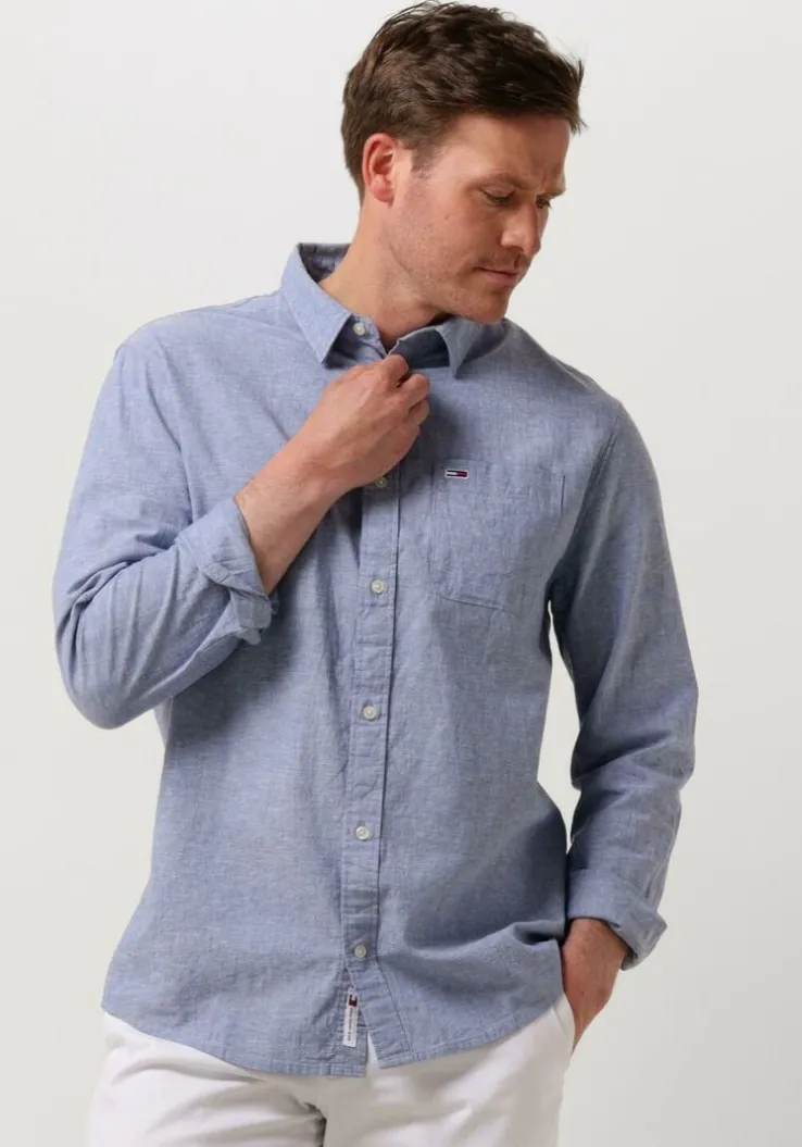 Met het TOMMY JEANS TJM REG LINEN BLEND SHIRT ben jij helemaal on-trend! Dit casual overhemd in de kleur blauw is perfect voor heren die houden van een stijlvolle look. Draag het overhemd op een stoere jeans voor een relaxte uitstraling, of combineer het met een chino voor een meer geklede look. Met dit overhemd kun je zowel naar je werk als naar een feestje. De linnen blend stof zorgt ervoor dat het shirt licht en luchtig aanvoelt, ideaal voor warme dagen. Maak je outfit compleet met een paar sneakers en een trendy horloge.