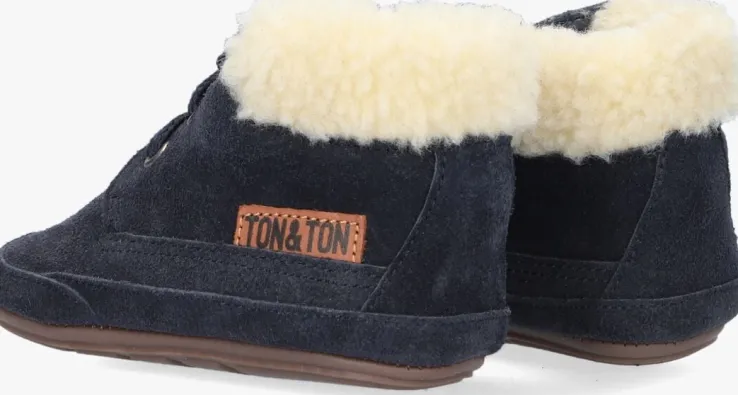 Die lieve kleine voetjesbescherm je natuurlijk met zo’n té schattig babyschoentje van TON & TON. Dit donker blauwe modelPB20W016 is uitgevoerd in suède en heeft een faux fur enkelkraagje wat doorloopt in de voering. Het voetbedje is gemaakt van leer en is niet uitneembaar. Aan de zijkant van het schoentje is een leren merklabel bevestigd. De zachte voering en het comfortabele buigzame rubberen zooltje zorgenvoor een optimaal comfort en een goede ontwikkeling van de voet. Doordat hij fijn mee buigt wikkelt het voetje goed af en hetgripvaste profiel zorgt voor een goede grip en stabiliteit wanneer je kleintje al probeert om te gaan staan of zelfs die eerste voorzichtige stapjes te zetten. Door de zachte buitenkant is dit schoentje ook ideaal voor op het kinderdagverblijf!
