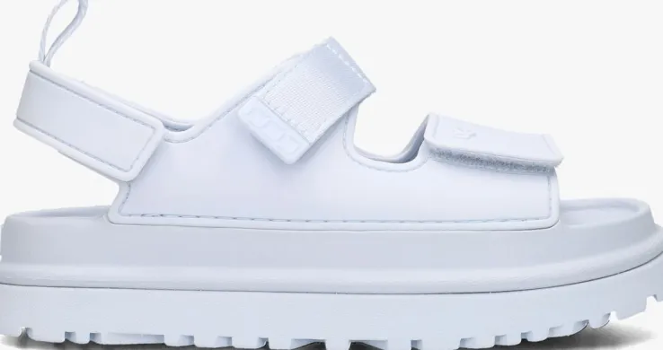 Stap in stijl met de UGG K GOLDENGLOW sandalen! Deze sandalen zijn gemaakt van lichtblauw leer en hebben drie klittenband sluitingen waardoor je ‘m gemakkelijk naar de gewenste breedte kunt verstellen. Opvallend is de aantreklus aan de hiel en het merkembleem op de voorvoet en achterop de zool. De binnenvoering is gemaakt van textiel en heeft een rubber voetbed. De zool is ook van rubber en heeft het welkbekend ugg logo. Combineer ze met een zomerjurkje of een trendy jumpsuit voor een complete look. Met de UGG K GOLDENGLOW sandalen ben je klaar voor elke zomerse gelegenheid!