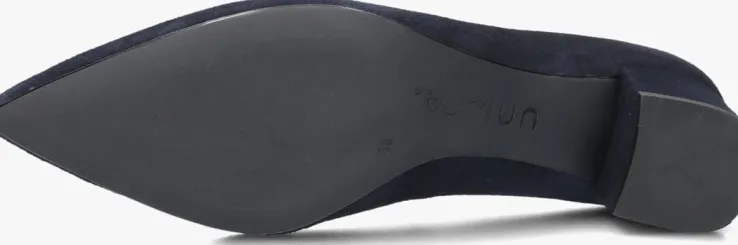 Pump voor dames van het merk Unisa. Deze pump met hak is uitgevoerd in de kleur donkerblauw. De binnenkant is uitgevoerd in leer en een suède contrefort draagt bij aan het loopgemak. De rubberen loopzool heeft een medium profiel en de hak meet circa 5 cm.