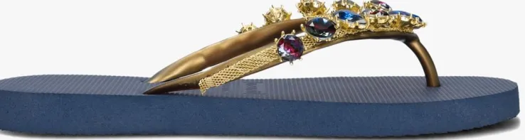 Stap in de zomerse vibe met de ALEXIA teenslippers van UZURII! Deze blauwe slippers zijn perfect voor dames die op zoek zijn naar comfort en stijl tijdens hun vakantie. Gemaakt van rubber, zowel aan de buitenkant als de zool, zorgen ze voor een zachte en stevige grip. De slipper heeft een goudkleurig bovenwerk met blauw met groene steentjes. Draag ze naar het strand of tijdens een ontspannen wandeling langs de boulevard. Combineer de ALEXIA slippers met een luchtige zomerjurk of een trendy short en je bent helemaal klaar voor de zonnige dagen!